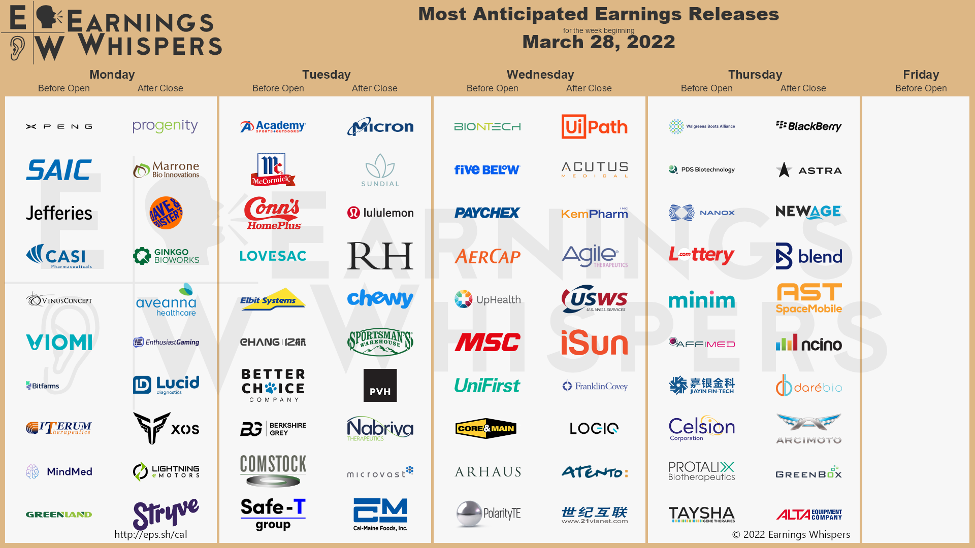 2021년 4분기 실적발표 기업 - 2022년3월28일 ~ 2022년4월1일 어닝(실적) 발표 기업, 샤오펑모터스 (XPEV), 마이크론 테크놀로지 (MU), 룰루레몬 (LULU), BOC Hong Kong ADR (BHKLY), 맥코..