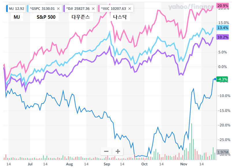 2020.01~2020.11.26 MJ ETF 주가 성장 비교
